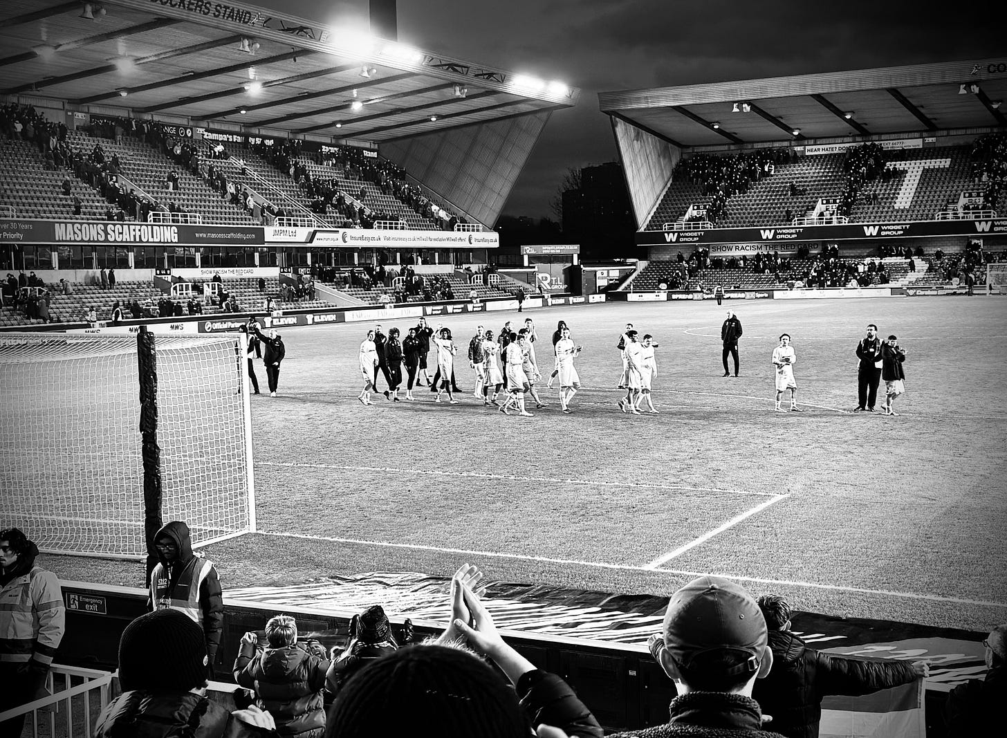 The half continued with both sides scrapping and probing for a second, before being soured by United left-back Sam McCallum going down injured after clearing the ball. I didn’t see exactly what happened, but he was in real distress, and was then stretchered off after a long delay. It looked a proper nasty one.